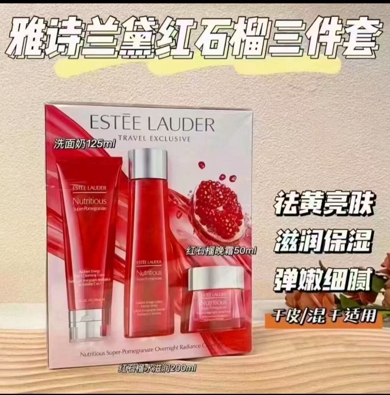 {雅诗兰黛}红石榴三件套护肤套装爽肤水+洁面+面霜保湿补水套盒生日礼物情人节礼物A90