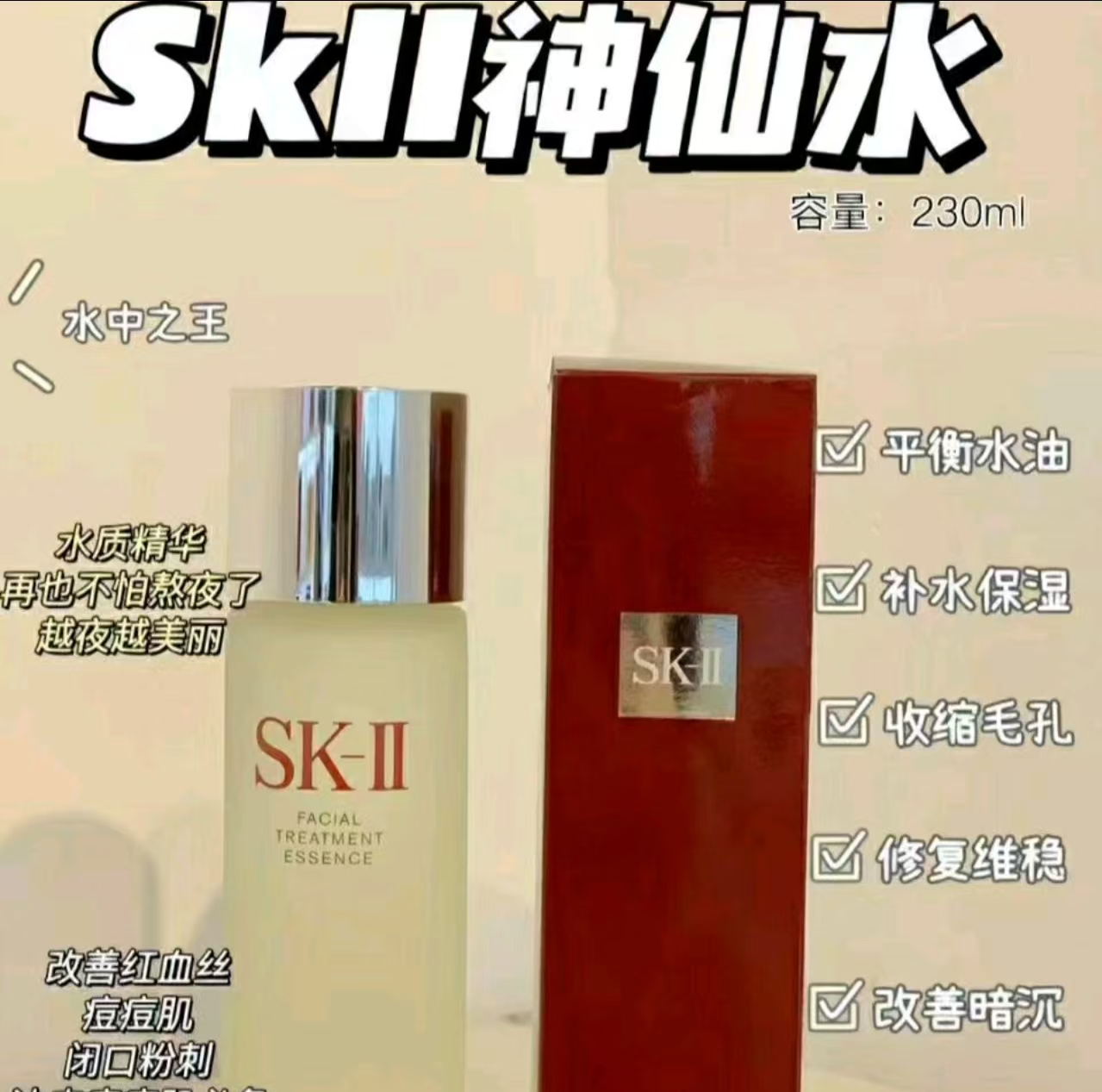 {专柜礼袋}SK-II 神仙水230ml护肤水护肤精华露爽肤水保湿提亮 里带包装A69